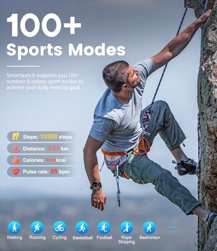 100+ Sports Modes and IP68 Waterproof: Engage in over 100 sports modes including running, yoga, and cycling. The watch tracks real-time data such as heart rate, steps, calories, and distance. Its IP68 waterproof rating ensures durability during outdoor activities and under various weather conditions.